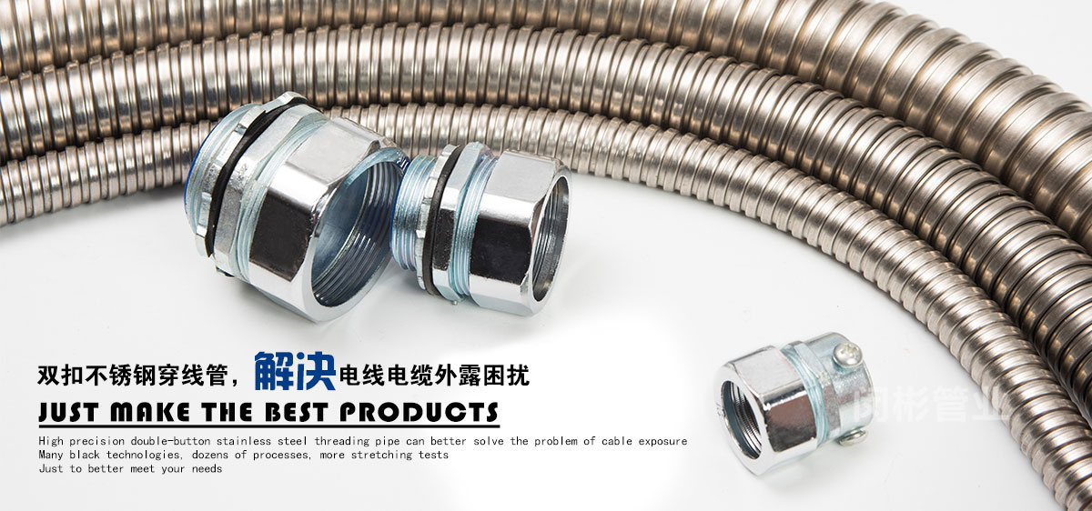 除此之外,公司還致力于金屬軟管接頭,普利卡管,普利卡接頭,不銹鋼穿線管的銷售。公司本著品種多、質量優、服務好的宗旨,不斷開發、創新產品,以滿足日益發展的市場需要。產品主要包括:金屬軟管接頭 ,橋架接頭,塑料軟管接頭,AD接頭,不銹鋼接頭,普利卡接頭,包塑金屬軟管,不銹鋼軟管,不銹鋼金屬軟管,不銹鋼編織軟管,普利卡軟管,尼龍軟管,塑料波紋管,尼龍拖鏈等機床配件。產品廣泛應用于建筑、機床、鐵路、車輛、化工、汽車、監控、建筑裝修、建筑裝飾、建材、裝修裝飾等行業。上海閔彬管業有限公司高質量包塑管在實際使用中多家工程單位的認可、使用與推廣。